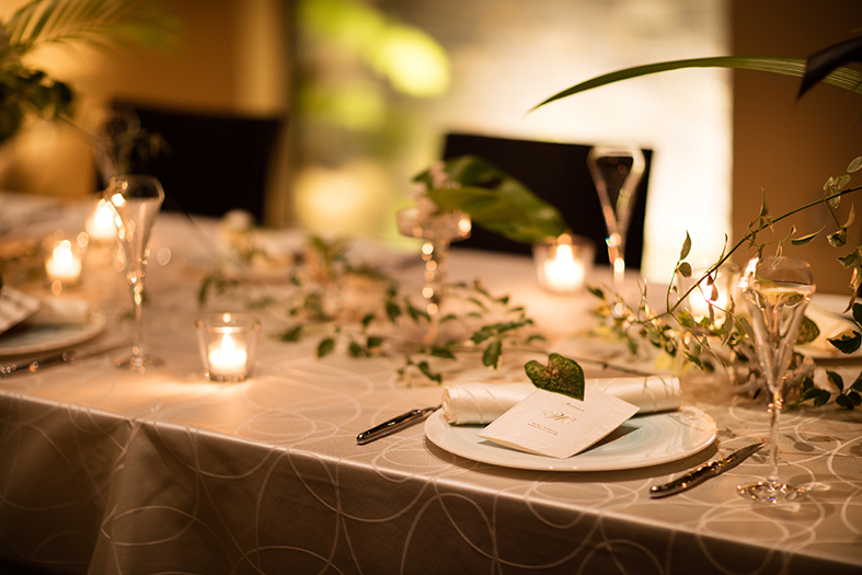 クリスマスやバレンタインなどロマンティックなイベントの多い冬。気候的にも一番空気が澄んでキャンドルやイルミネーションが映えます。明かりをふんだんに使った装飾を考えてみてもいいですね。澄んだ空気の中、リゾートガーデンは寒さがありますので、パーティーはガーデンを眺めることのできる暖かい室内で。デザートビュッフェのみをガーデンで行うというのもいいですよね。
